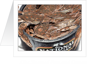 Hot steamed Chesapeake Bay crabs go together with National Bohemian's "Natty Boh" like peas and carrots! Sister print to "Peas & Carrots" Fine note cards to send to any crab lover!